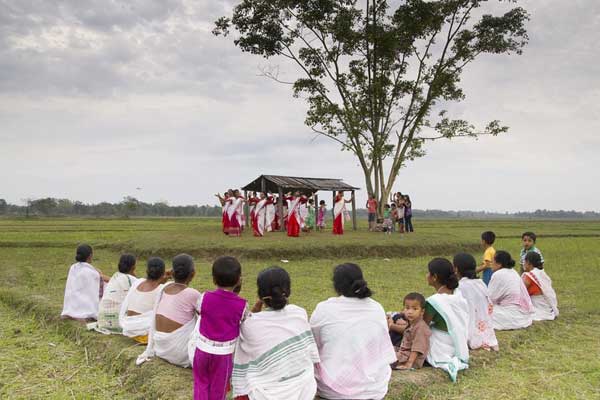 Why: According to a myth, the three daughters of Lord Brahma had an unusual longing for sucking human blood. To quench their thirst, they went to Lord Shiva seeking his consent. Worried Shiva asked them to leave to a place where no human beings lived. On their way to search such a place, the sisters sang and dance. On reaching a place called Garuchar Rajya, inhabited by deities, the female deities joined in their merriment. With the joy of songs and dance, spring set in. It was at that moment when one of the sisters announced that Bihu would be an agricultural festival primarily celebrated by peasants where the product will be shared by deities and human beings.