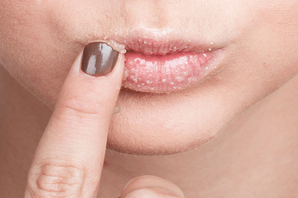 Put one to two teaspoons of baking soda in a small bowl. Add in a little amount of water. Dab on libs with massaging action to rid lips of dead skin.