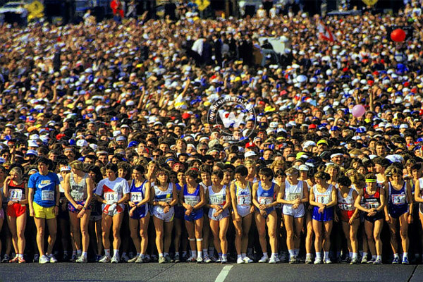 The NYC Marathon is apparently the world's largest marathon with a record of 47,340 finishers in 2011.